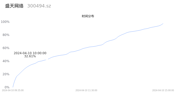 根据成交分布分析,该股票当天放量成交,成交清淡。时间上看,早盘前半小时成交量占据当天总成交量的32.61%;价格上看,成交呈现中间峰。成交分布分析主要研究股票成交的分布特性,不具有预测功能,请知悉。