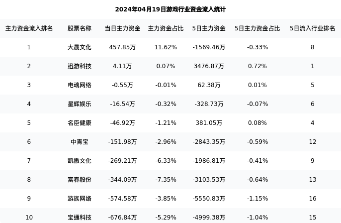 从主力资金流向来看,游戏行业今日主力资金流入20.26亿元,在所有申万二级行业中排名:44/131。