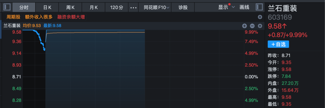 新能源方面,光热发电、可燃冰、核电核能、超临界发电等板块表现活跃,宝色股份开盘20%一字涨停,兰石重装、国机通用等均秒速封板。