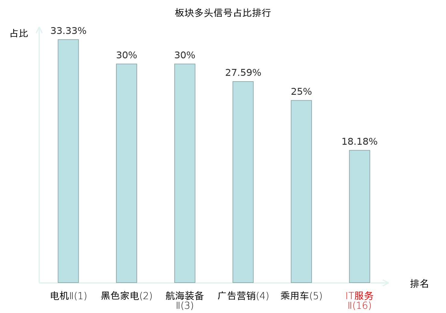 全市场所有行业板块中主力多头信号占比排名中,电机Ⅱ板块位居第一。乘用车板块名次提升最快,较昨日上升114位。