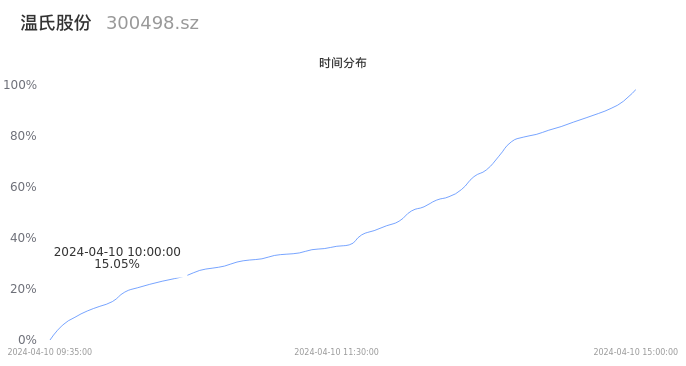 300498温氏股份2024年04月10日成交23.97万手,成交金额4.55亿元,相较昨日缩量10.53万手,换手率0.44%,成交清淡。