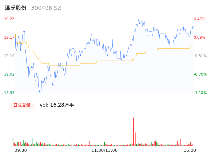 04月24日,温氏股份收报19.20,股价涨幅0.21%,成交金额3.12亿元,换手率0.30%。