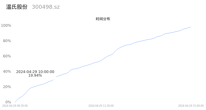 300498温氏股份2024年04月29日成交38.12万手,成交金额7.25亿元,相较昨日放量4.71万手,换手率0.70%,成交清淡。