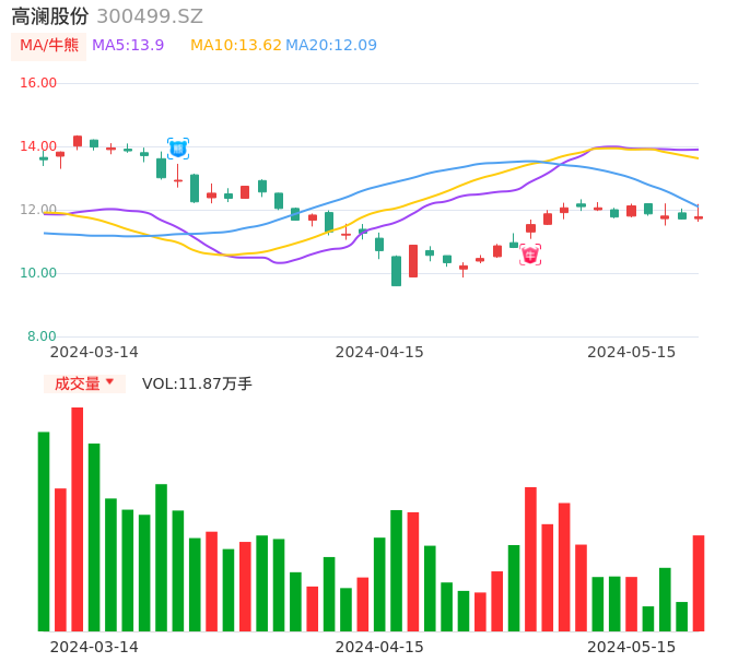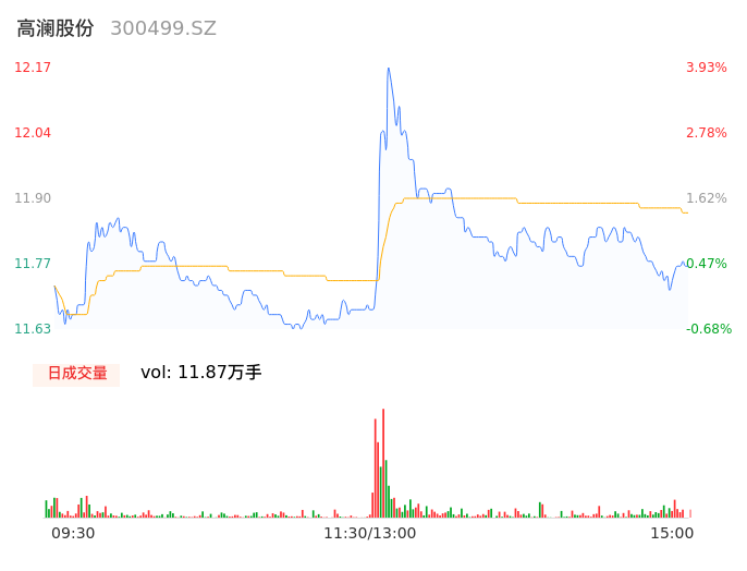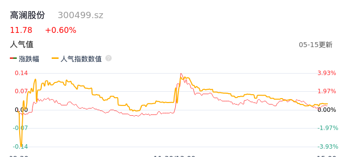 05月15日,高澜股份收报11.78,股价涨幅0.60%,成交金额1.41亿元,换手率4.41%。