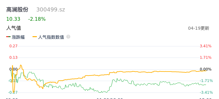 04月19日,高澜股份收报10.33,股价涨幅-2.18%,成交金额7785.81万元,换手率2.79%。