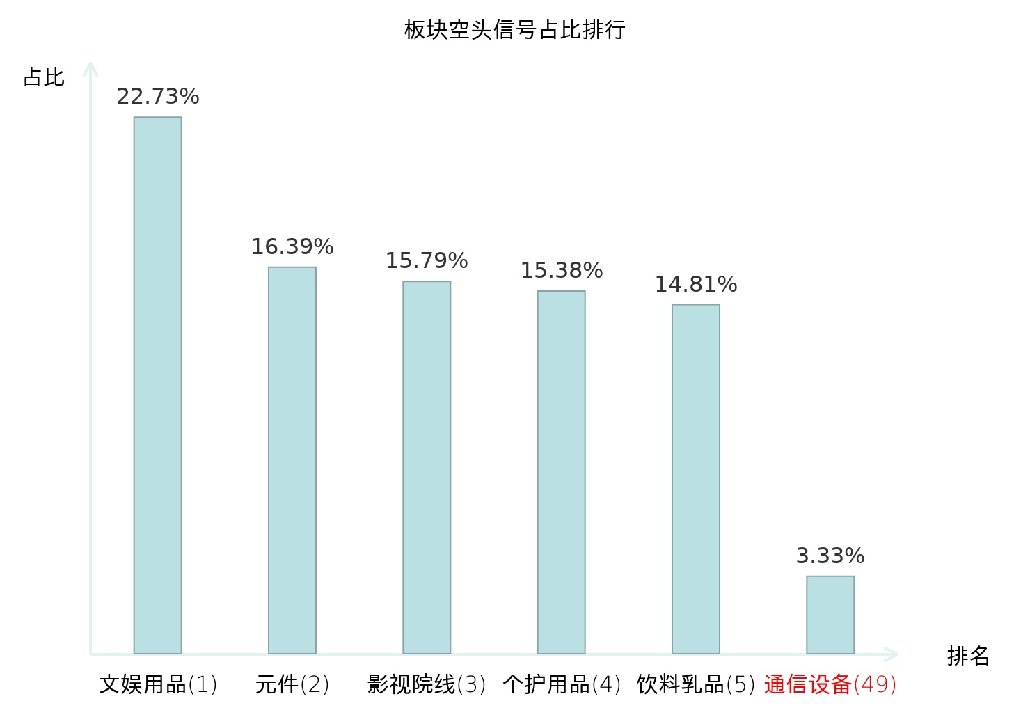 从主力宝信号数据分析,新易盛所属的通信设备板块中共3只股票发出主力空头信号,主力空头信号占比在全行业中排名第49位,较昨日上升33位。排名越高说明主力当日卖出意愿越强。全市场所有行业板块中,主力空头信号占比排名中,文娱用品板块位居第一;元件板块名次提升最快,较昨日上升128位。这些变动揭示了不同行业间主力资金的动向,为主力对相关板块态度的转变提供了重要参考。