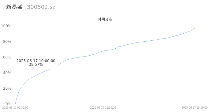 300502新易盛2025年06月17日成交36.41万手,成交金额38.90亿,相较昨日缩量22.03万手,换手率4.12%,成交清淡。