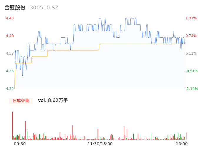 04月23日,金冠股份收报4.40,股价涨幅0.69%,成交金额3787.96万元,换手率1.05%。