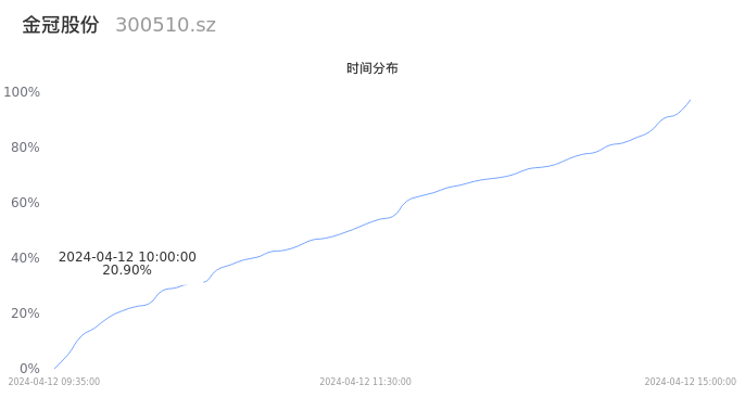 300510金冠股份2024年04月12日成交8.12万手,成交金额3937.25万元,相较昨日缩量543手,换手率0.99%,成交清淡。