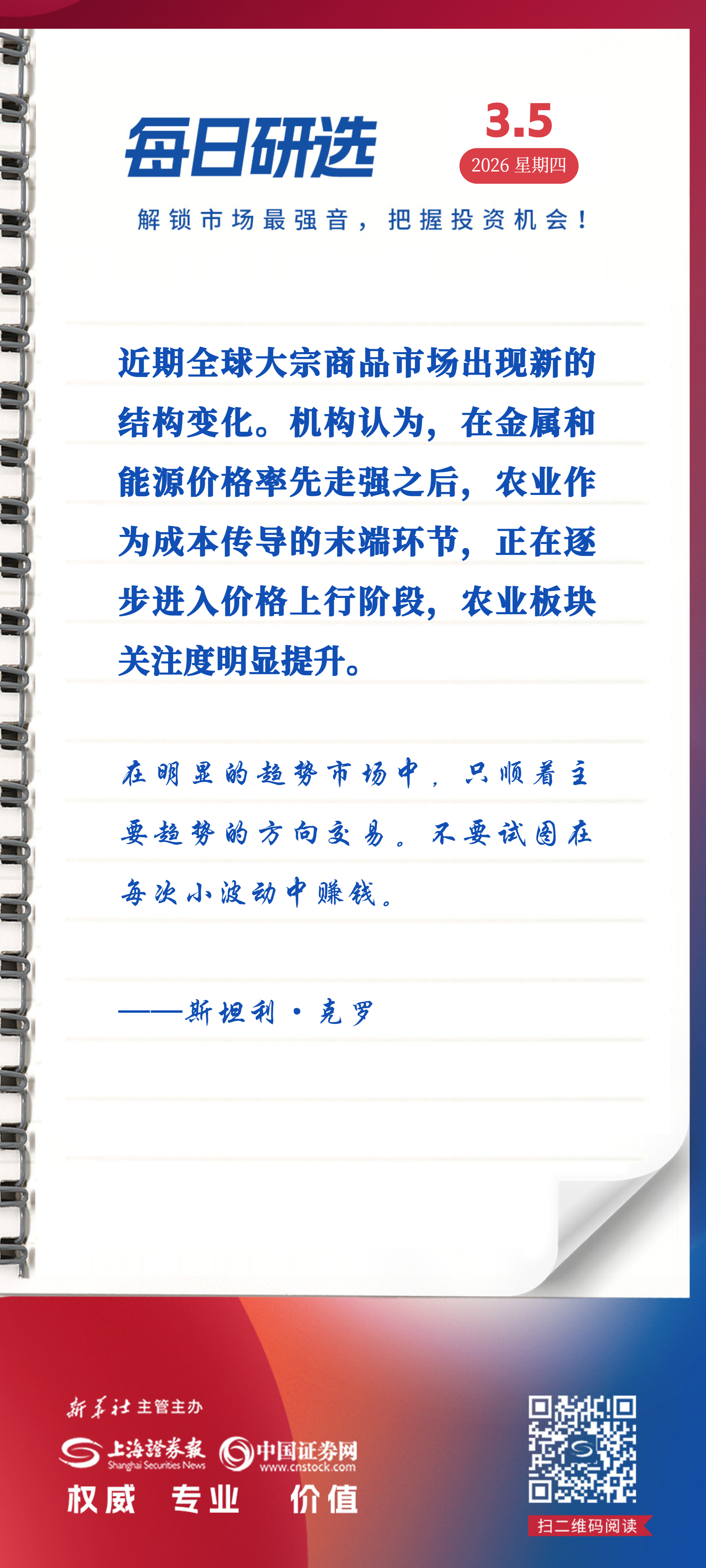 近期全球大宗商品市场出现新的结构变化。机构认为,在金属和能源价格率先走强之后,农业作为成本传导的末端环节,正在逐步进入价格上行阶段,农业板块关注度明显提升。