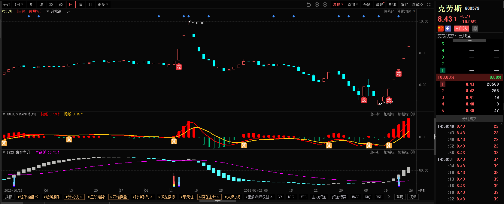 3)参考技术指标:克劳斯-升龙诀指标-出现龙信号