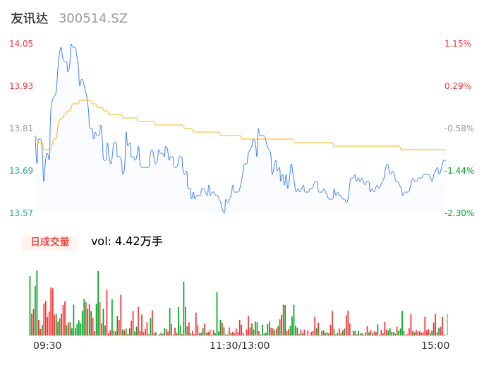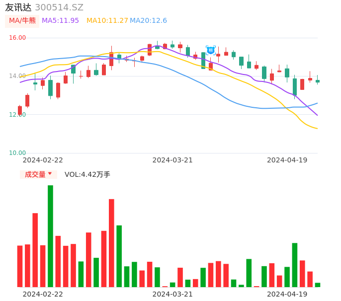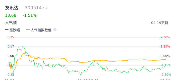 04月19日,友讯达收报13.68,股价涨幅-1.51%,成交金额6070.15万元,换手率2.84%。