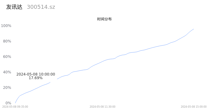300514友讯达2024年05月08日成交3.78万手,成交金额5385.21万元,相较昨日缩量1.01万手,换手率2.43%,成交清淡。