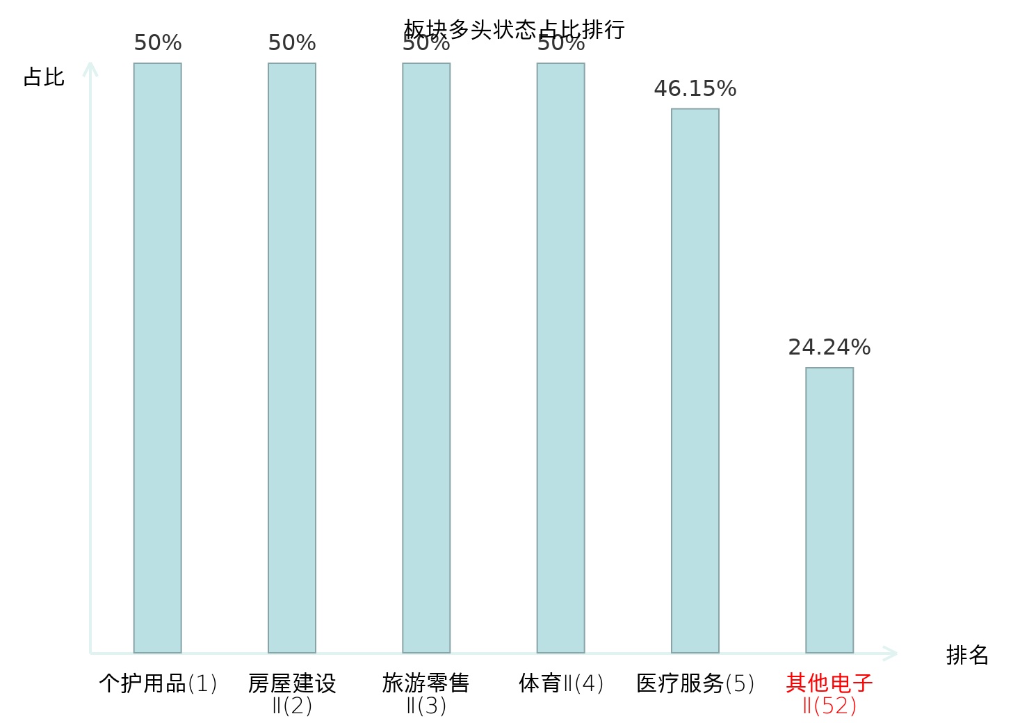 全市场所有行业板块中主力多头状态占比排名中,个护用品板块位居第一。影视院线板块名次提升最快,较昨日上升56位。