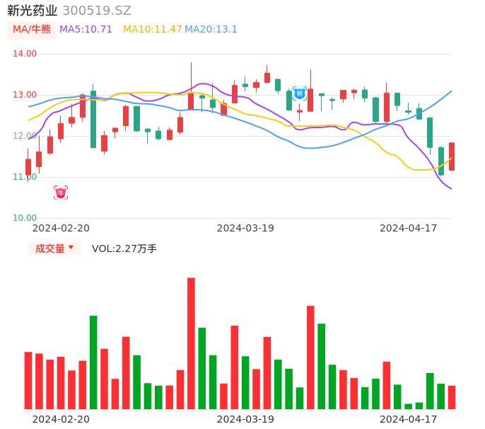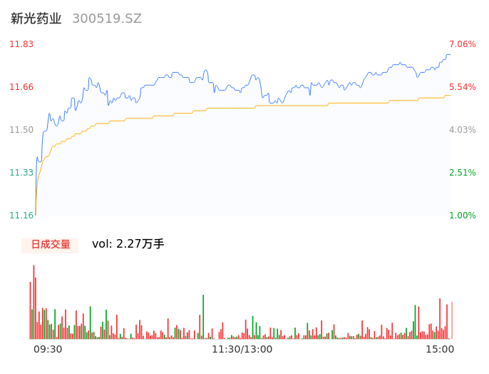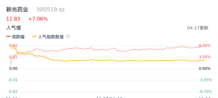 04月17日,新光药业收报11.83,股价涨幅7.06%,成交金额2641.53万元,换手率1.99%。