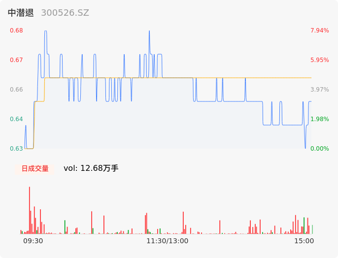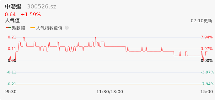 07月10日,中潜退收报0.64,股价涨幅1.59%,成交金额830.24万元,换手率6.63%。