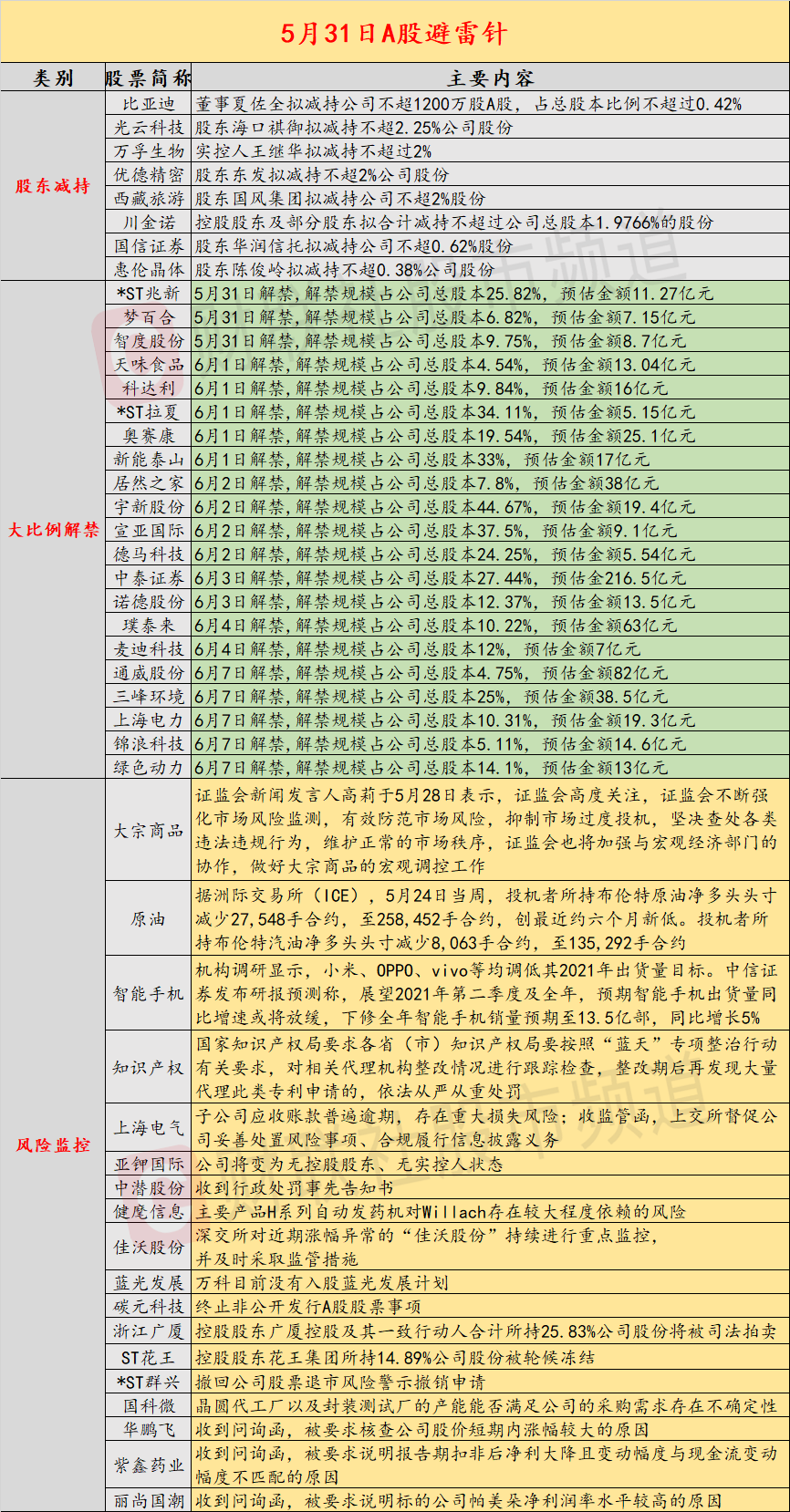 1、中泰证券:6月3日解禁,解禁规模占公司总股本27.44%,预估金216.5亿元。