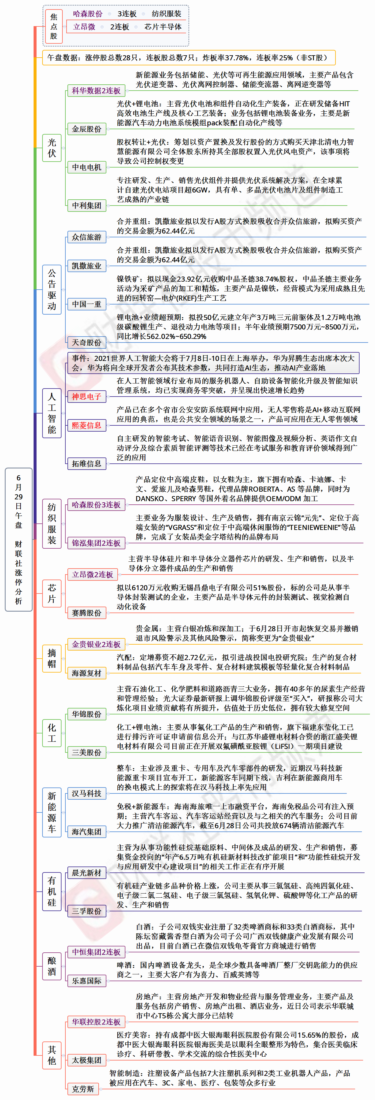 总之,资金风险偏好降低,连板空间压缩到3连板。考虑到板块持续性较差,昨日涨幅居前的猪肉、电力、半导体芯片、新能源车等板块集体回调,那么今日早盘领涨的有机硅、服装家纺、人工智能等板块在午后或适合多看少动。