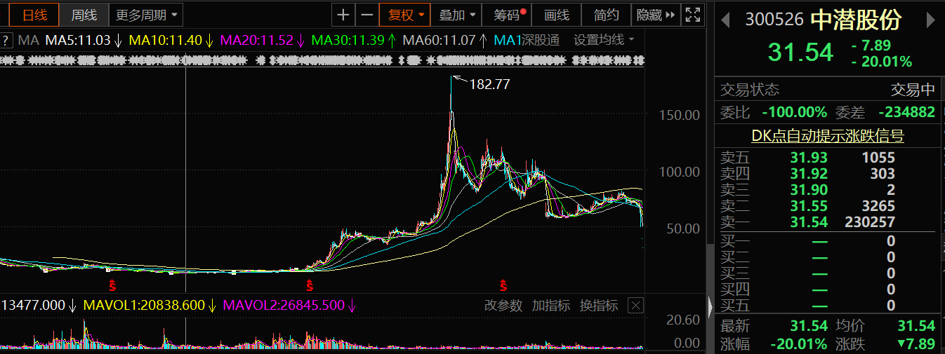 财联社4月22日讯,3天股价腰斩,“一代妖股”中潜股份贡献本周最惨烈走势。