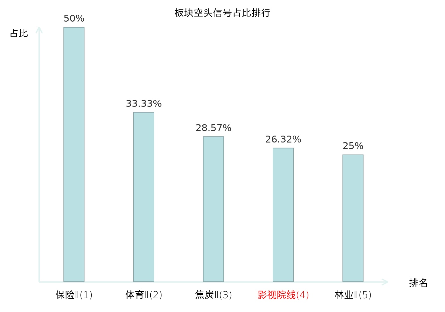 全市场所有行业板块中主力空头信号占比排名中,保险Ⅱ板块位居第一。装修建材板块名次提升最快,较昨日上升118位。