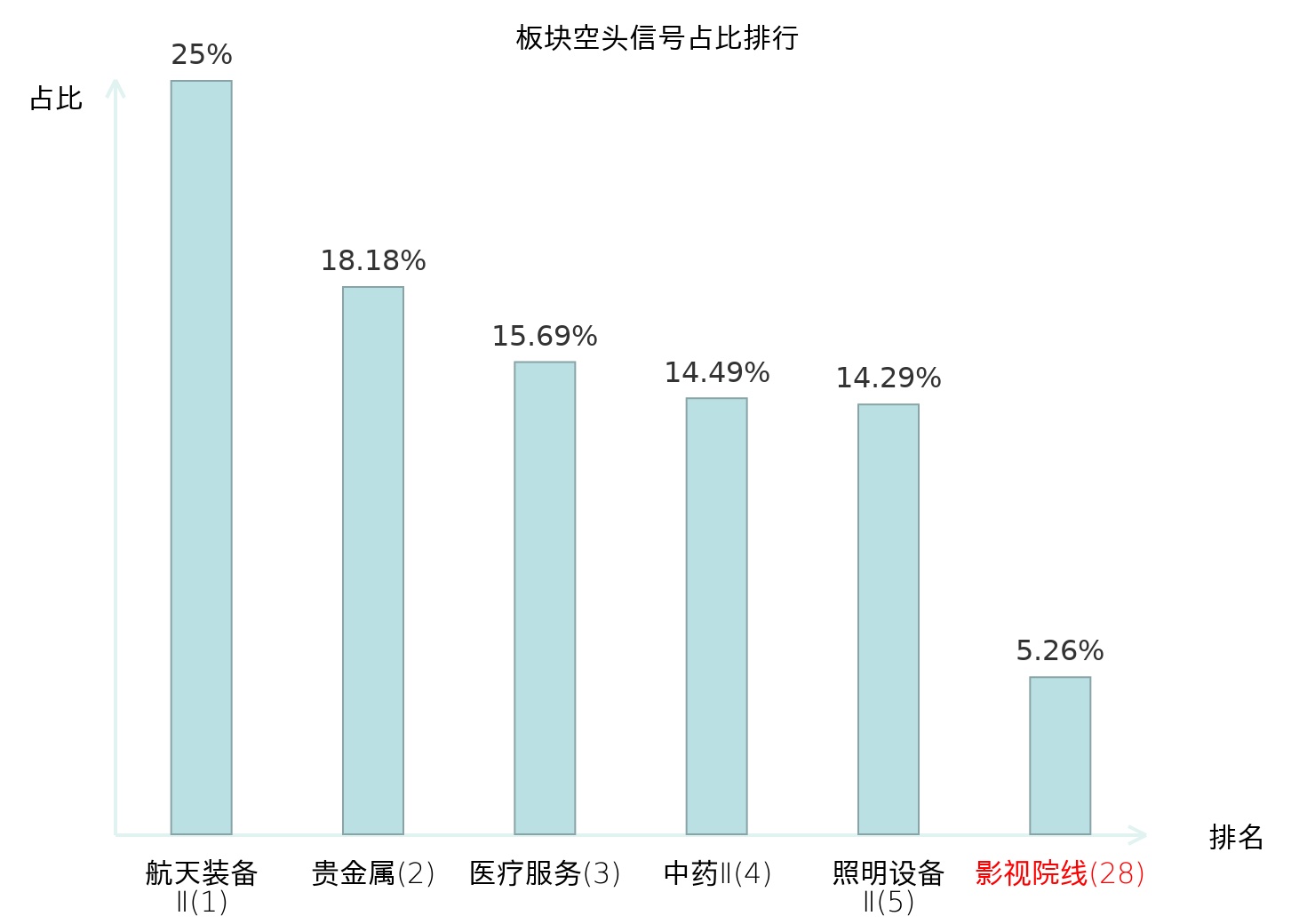 全市场所有行业板块中主力空头信号占比排名中,航天装备Ⅱ板块位居第一。物流板块名次提升最快,较昨日上升112位。