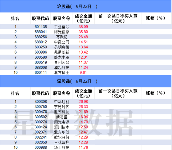 从沪股通前十大成交个股来看,工业富联位居首位;海光信息和寒武纪分居二、三位。