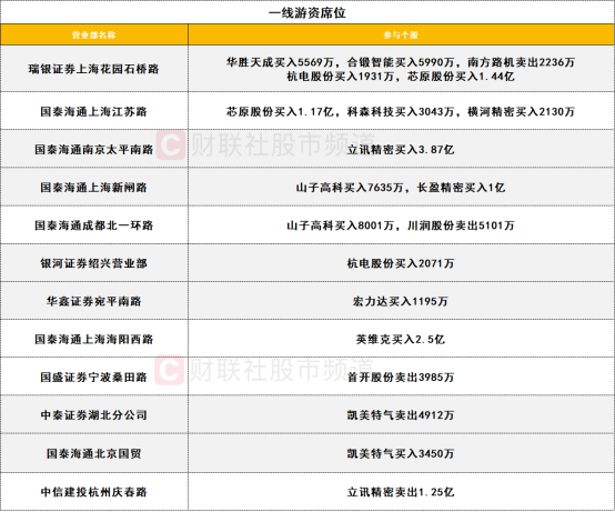 一线游资活跃度有所提升,一字板的立讯精密获国泰海通证券南京太平南路席位买入3.87亿,遭中信建投证券杭州庆春路卖出1.25亿。英维克获一家一线游资席位买入2.5亿。芯原股份获两家一线游资席位买入2.61亿。