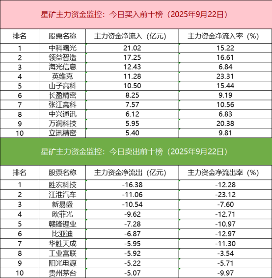 从个股主力资金监控数据来看,主力资金净流入前十的个股主要集中在算力和芯片板块,中科曙光净流入居首。