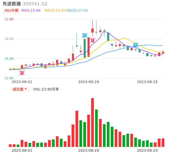 09月25日,先进数通收报16.04,股价涨幅0.88%,成交金额3.83亿元,换手率9.30%。
