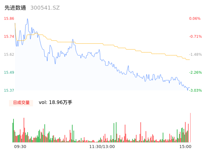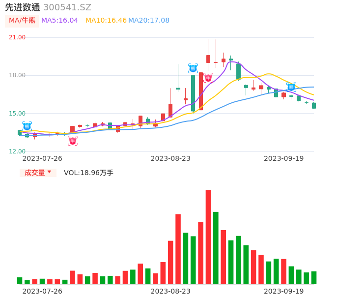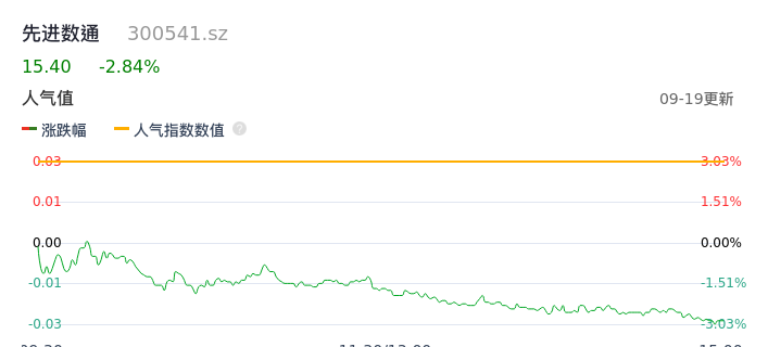 09月19日,先进数通收报15.40,股价涨幅-2.84%,成交金额2.95亿元,换手率7.38%。