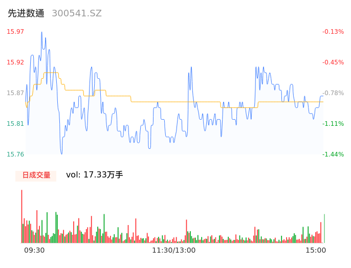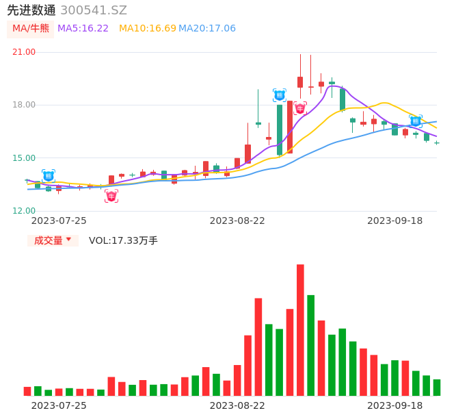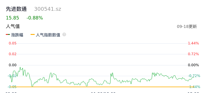 09月18日,先进数通收报15.85,股价涨幅-0.88%,成交金额2.75亿元,换手率6.75%。