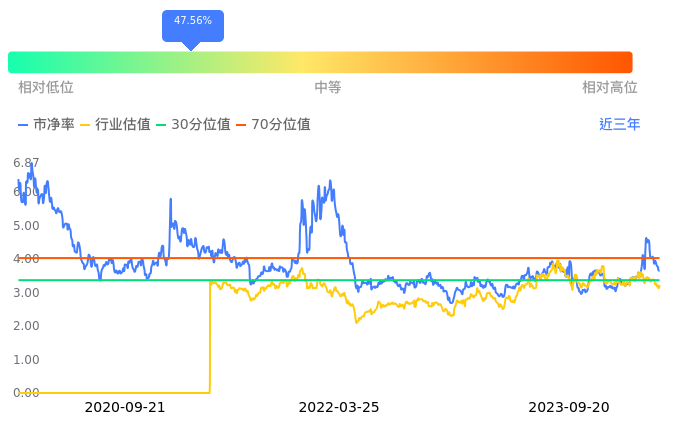 先进数通当前市净率PB为3.65,在所属的IT服务中,市净率PB排73,前五名分别为龙宇股份市净率0.90、城地香江市净率1.08、新智认知市净率1.22、东软集团市净率1.28、华宇软件市净率1.33。先进数通当前市净率PB为3.64,超过近3年47.56%的历史数据。
