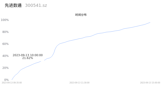 300541先进数通2023年09月13日成交37.05万手,成交金额6.10亿元,相较昨日缩量4047手,换手率14.42%,成交活跃。