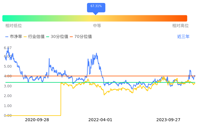2023年09月27日,先进数通下跌2.19%收于15.65,今日成交金额2.67亿元。下文将从市盈率PETTM、市净率PB、市现率3个角度去分析公司估值情况。