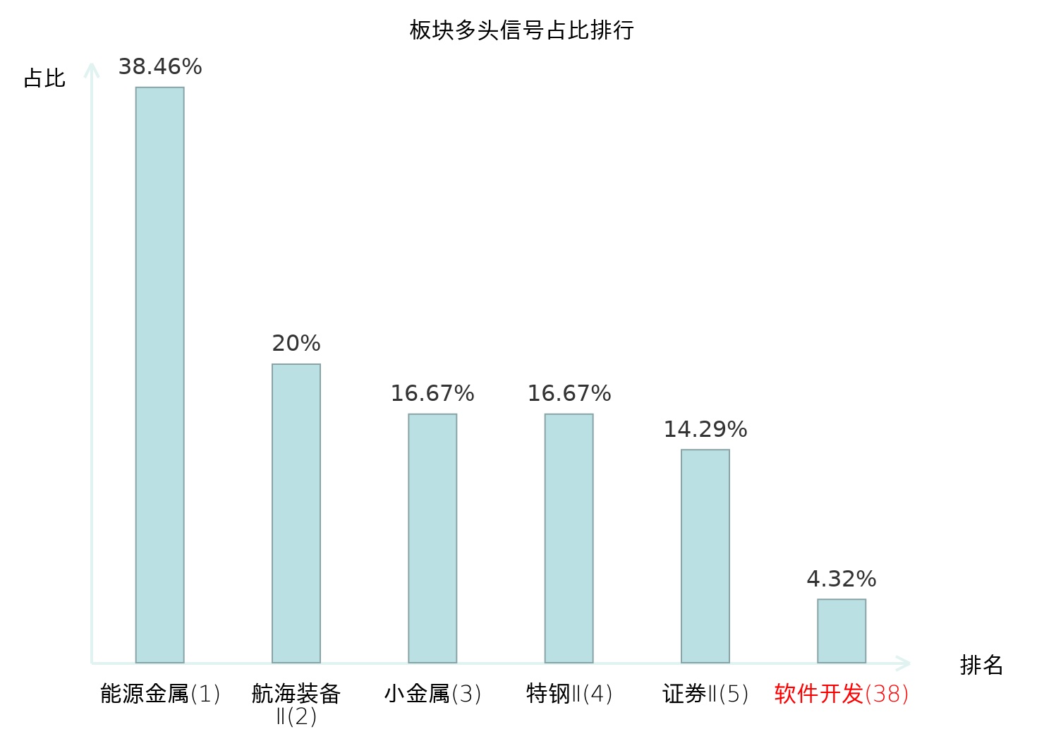 从主力宝信号数据分析,新晨科技所属的软件开发板块中共6只股票发出主力多头信号,主力多头信号占比在全行业中排名第38位,较昨日上升11位。排名的提升表明主力对于该板块的买入意愿有所增强,对投资者具有一定的参考价值。全市场所有行业板块中,能源金属板块主力多头信号占比位居第一。航海装备Ⅱ板块名次提升最快,较昨日上升112位。这些变化揭示了不同行业间主力资金偏好的动态调整,为投资者提供市场趋势的重要线索。