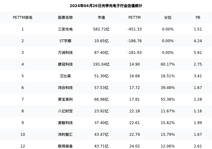 从估值角度看:联得装备最新市盈率PETTM为24.02,在行业内排名9/93,处于12.06分位。