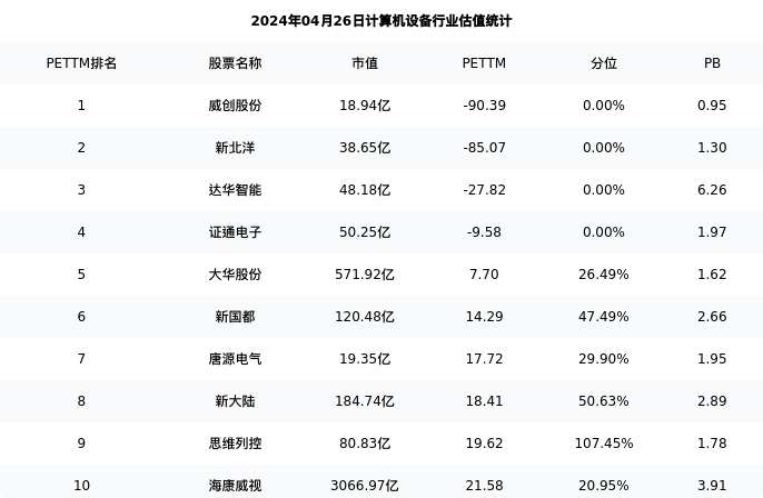 雄帝科技最新报告期数据为一季度,下表汇总了计算机设备行业内市值靠前的公司一季度主要经营数据