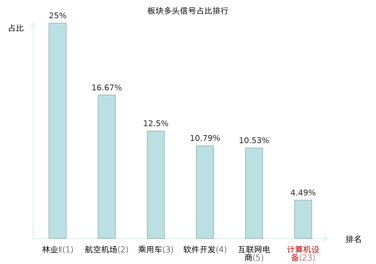 从主力宝信号数据分析,古鳌科技所属的计算机设备板块中共有4只股票发出主力多头信号,主力多头信号占比在全行业中排名第23位,较昨日上升22位。排名的上升表明主力对该板块的买入意愿增强,为投资者了解市场情绪提供了参考。全市场所有行业板块中主力多头信号占比排名中,林业Ⅱ板块位居第一,较昨日上升125位,显示出该板块近期获得主力资金的显著关注。