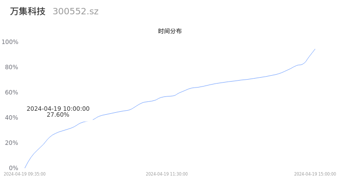 300552万集科技2024年04月19日成交8.96万手,成交金额1.88亿元,相较昨日缩量4.57万手,换手率7.12%,成交清淡。