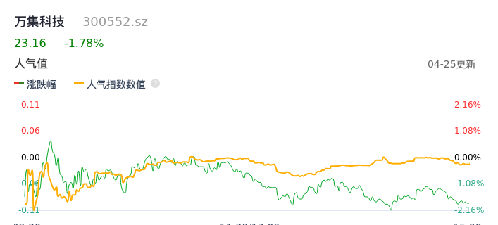 04月25日,万集科技收报23.16,股价涨幅-1.78%,成交金额2.66亿元,换手率9.04%。