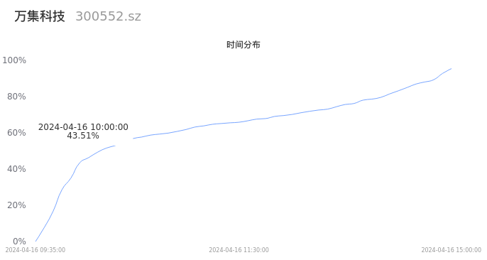 300552万集科技2024年04月16日成交14.65万手,成交金额3.06亿元,相较昨日放量1.93万手,换手率11.64%,成交活跃。