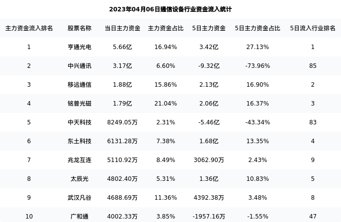 从主力资金流向来看,通信设备行业今日主力资金流入227.38亿元,在所有申万二级行业中排名:66/131。