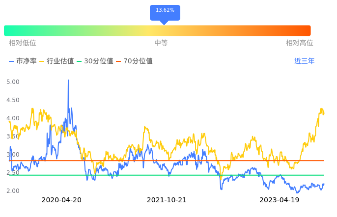 ST路通当前市净率PB为2.19,在所属的通信设备中,市净率PB排13,前五名分别为*ST新海市净率1.09、共进股份市净率1.51、高鸿股份市净率1.56、大富科技市净率1.72、辉煌科技市净率1.78。ST路通当前市净率PB为2.20,超过近3年13.62%的历史数据。