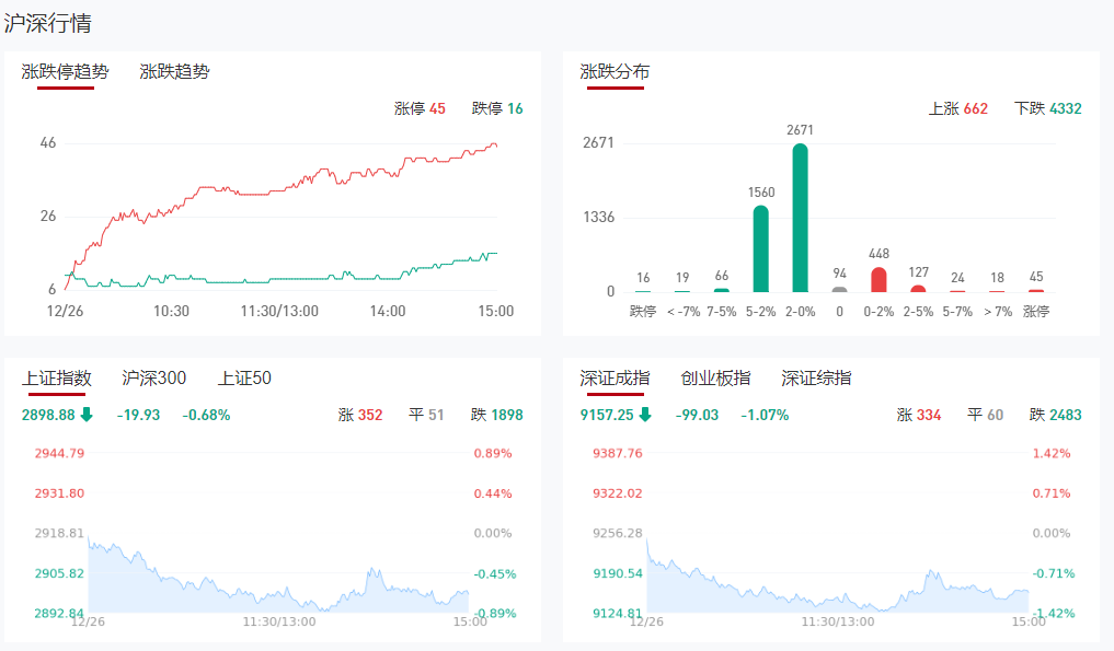 大盘全天低开低走,创业板指领跌,沪指再度失守2900点。截至收盘,沪指跌0.68%,深成指跌1.07%,创业板指跌1.26%。总体上个股跌多涨少,全市场4400只个股下跌。沪深两市今日成交额6099亿,较上个交易日放量18亿。