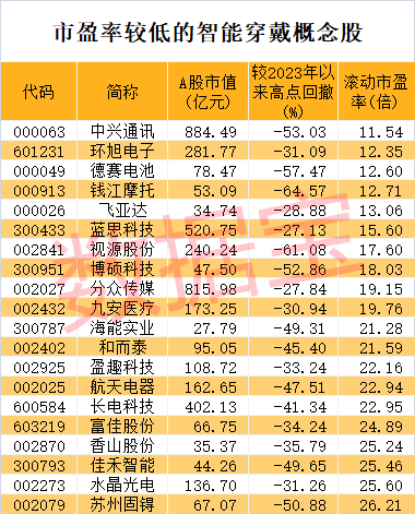 从估值水平来看,截至1月31日收盘,25股滚动市盈率不足30倍。中兴通讯、环旭电子、德赛电池、钱江摩托、飞亚达等滚动市盈率在20倍以下。