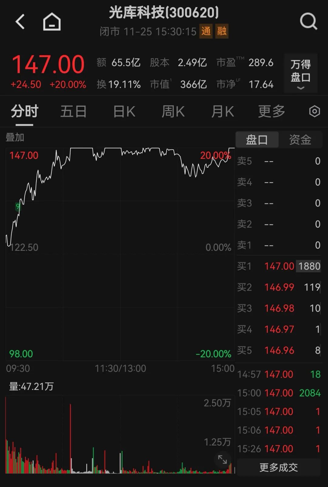 通信设备股集体放量高开高走,板块指数盘中一度大涨逾6%。光库科技(300620)临近收盘最后5分钟20%涨停,股价创历史新高,德科立亦20cm涨停,特发信息则开盘秒速封板,连续第3日涨停,鼎信通讯、科信技术等纷纷涨停或涨超10%。