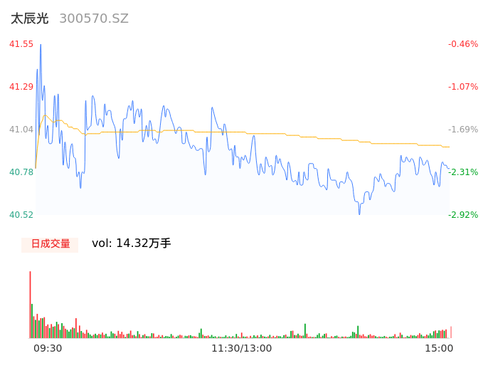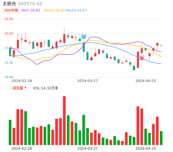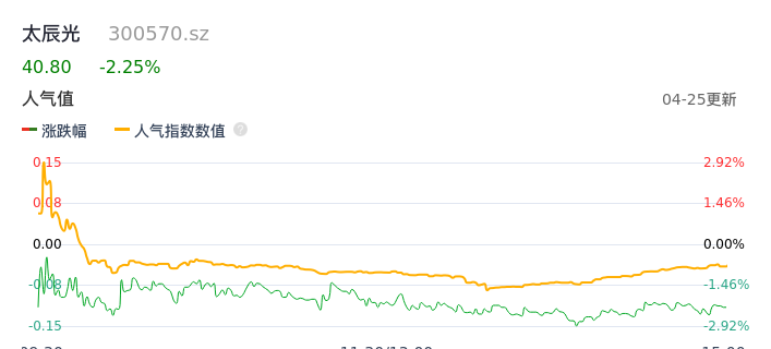 04月25日,太辰光收报40.80,股价涨幅-2.25%,成交金额5.86亿元,换手率7.44%。