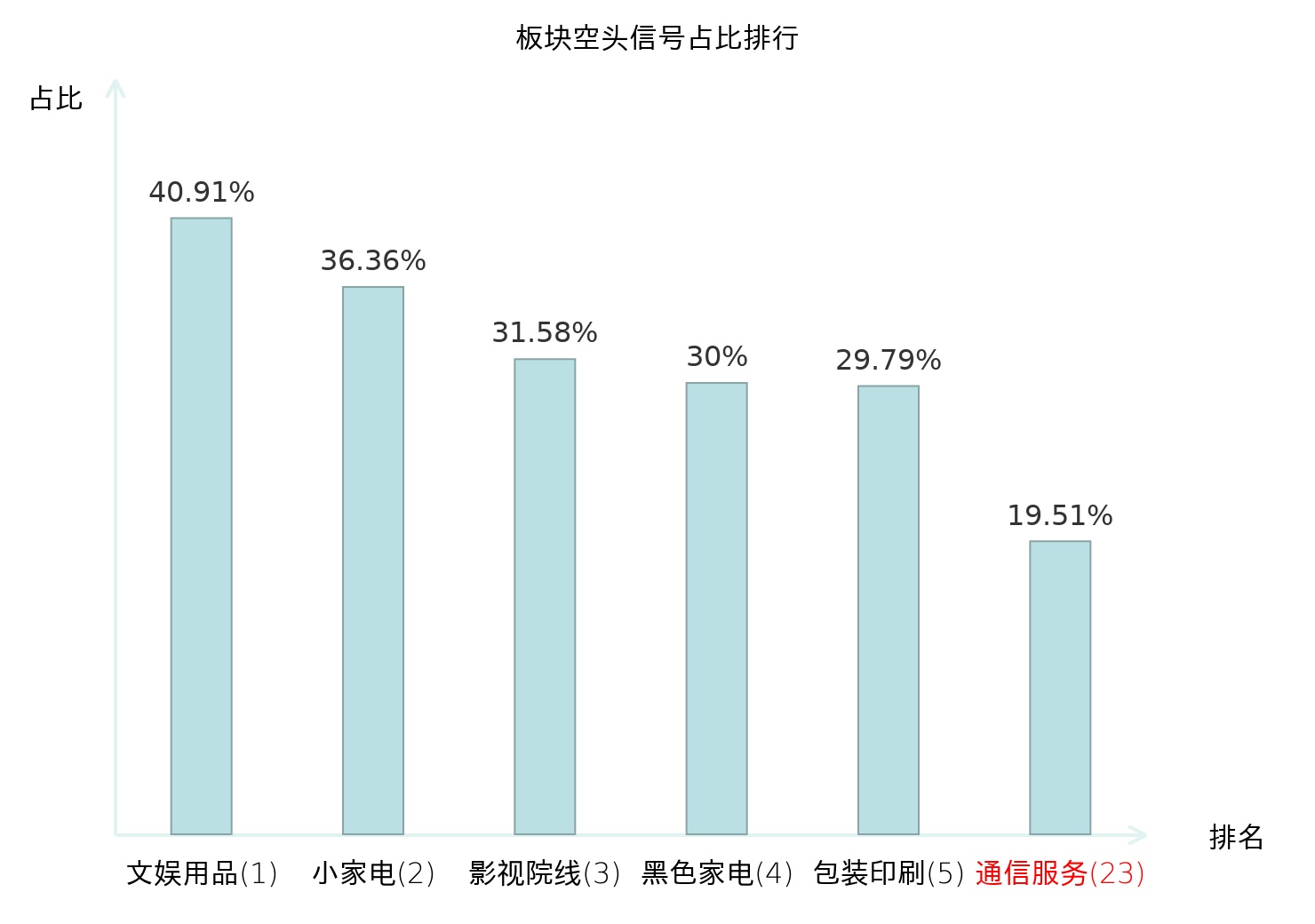 全市场所有行业板块中主力空头信号占比排名中,文娱用品板块位居第一。包装印刷板块名次提升最快,较昨日上升124位。