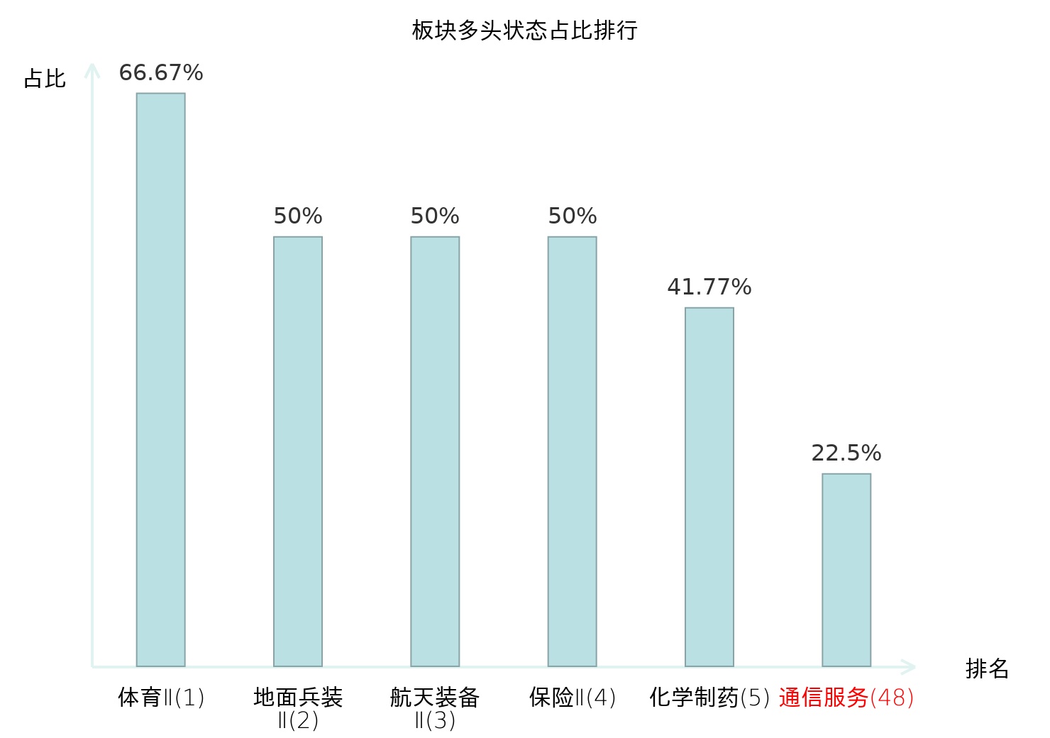 全市场所有行业板块中主力多头状态占比排名中,体育Ⅱ板块位居第一。普钢板块名次提升最快,较昨日上升98位。