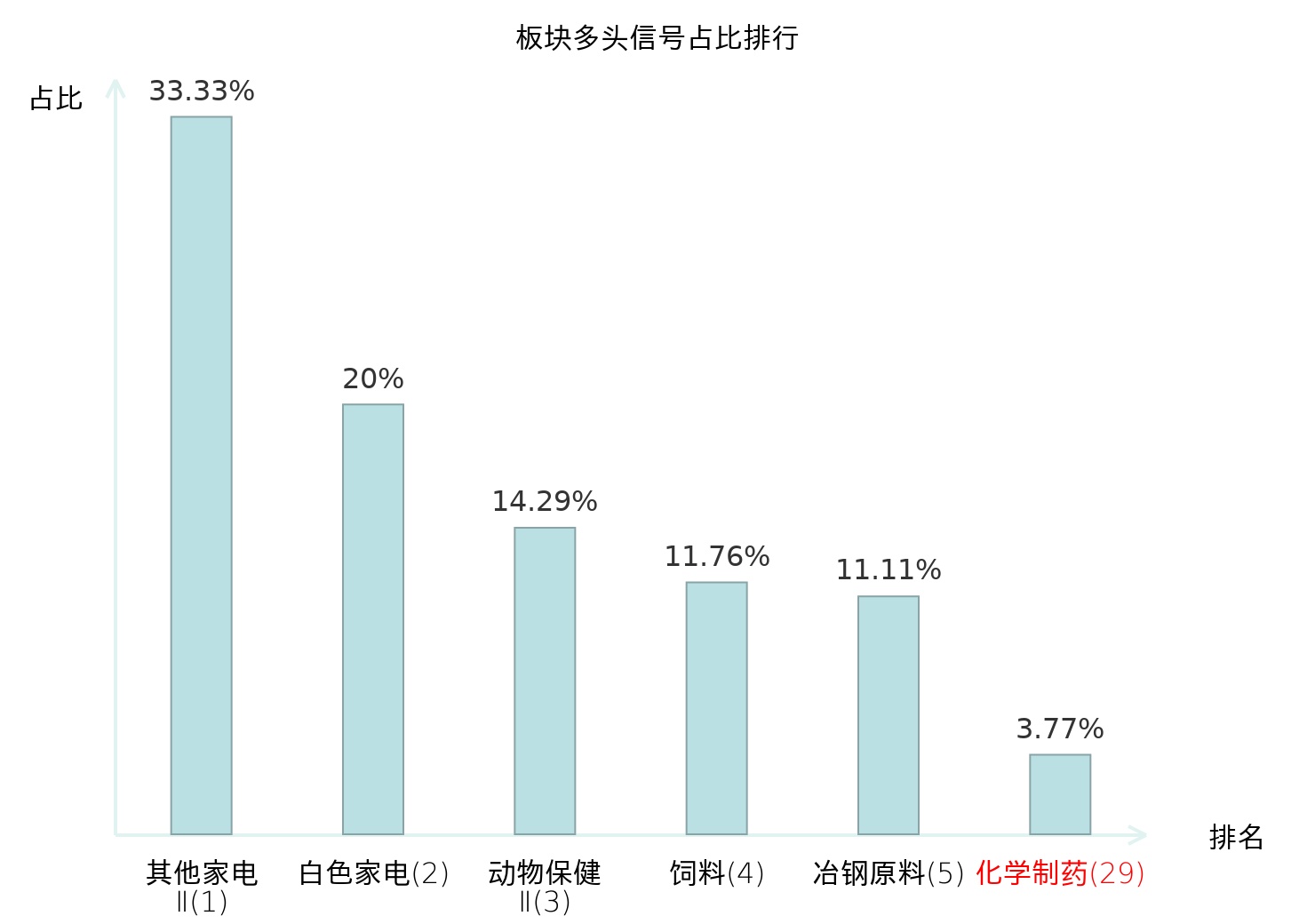 全市场所有行业板块中主力多头信号占比排名中,其他家电Ⅱ板块位居第一。其他家电Ⅱ板块名次提升最快,较昨日上升128位。